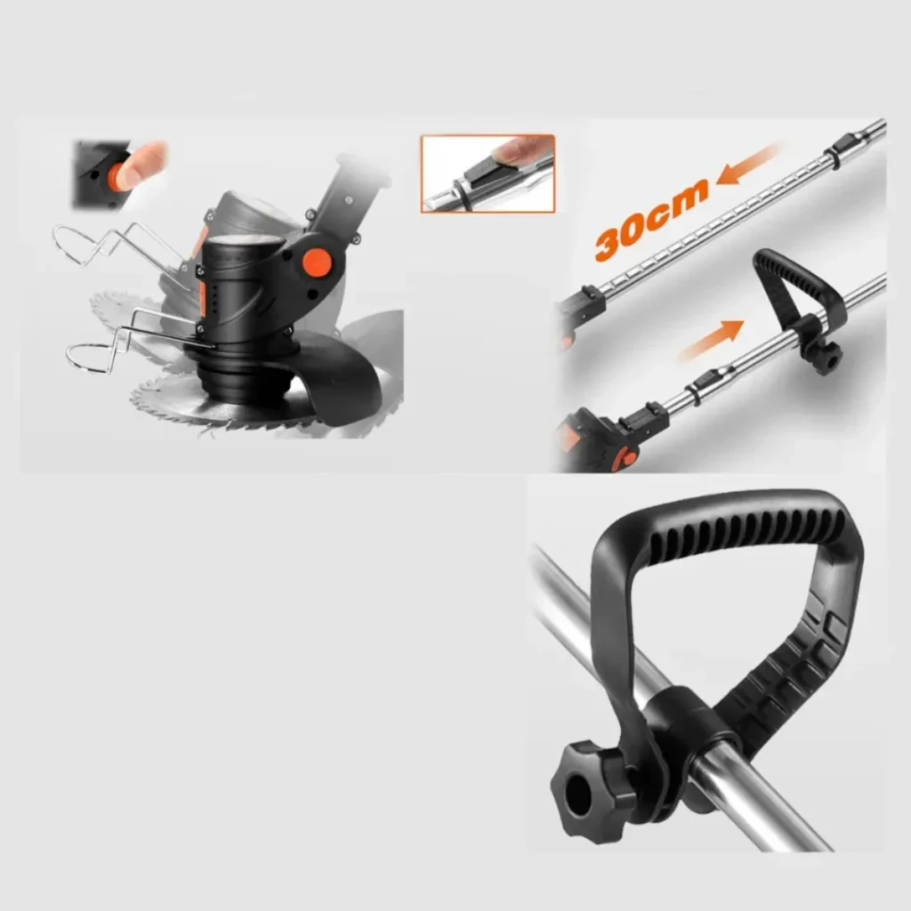 Kosiarka jest lekka, praktyczna i wytrzymała. Akumulatory cechują się długą żywotnością, a dzięki trzem rodzajom ostrzy dołączonych do zestawu można optymalnie wykonywać różne zadania – od koszenia trawy po przycinanie małych gałęzi i krzewów.